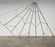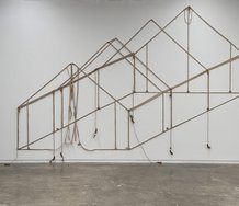 In some of his more recent Auckland shows - within his own studio, at Te Tuhi, or else at Hopkinson Cundy - Andrew Barber has exploited his formidable DIY skills by presenting very large stretchers as forms of planar architecture: either freestanding and extending upwards from floor to ceiling, attached firmly to the ceiling between beams, or covering walls and extending out from corners horizontally.