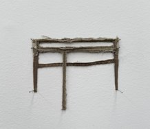 Barber’s current exhibition subsequently presents butted together stretchers holding unpainted patchwork canvases as freestanding walls - two long thin ones that converge at an angle but don’t touch. They refer to tall hedges (like windbreaks) in an imaginary landscape, the tradition from which his painting practice comes. The way too they obstruct the gallery space is witty in that you ‘hedge your bets’ in turning left or right if you wish to go to the office. Only one way succeeds: the opposite side is in darkness. Overall from the front, the walls seem to be a combination of Robert Irwin scrim works and a large monochromic Amish quilt.