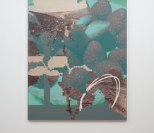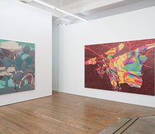 Her first show in Auckland since she won last year’s Walters Prize, this Hopkinson Mossman installation carries on Newby‘s interest in floors or low planes - an aspect of two presentations she made at Auckland Art Gallery. Instead of coloured walk-on layers of concrete with embedded crystals, ceramics or other assorted items, we now have a very long low table (or platform) of creamy-pink pine planks extending over a third of the main gallery floor, and tucked tightly into three walls.