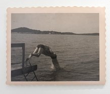 The title of another work, Call Me On Your Way Back Home, betrays a certain nervous anxiety bordering on the neurotic and continues the soap opera performance. And as if to add to the melodrama, the painting hints at a heart shape while suggesting a gaping mouth.