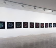 Anybody who has ever followed de Lautour’s career closely will have opinions on Vangioni’s selection and the weight given to different periods. I myself am especially fond of the ‘bad white art’ chunky canvases (late nineties), of belligerent, muscle-bound, tattooed kiwi-yobbos rendered in thick paint, and also of the hanging canvases (early millenium) of logos that enclose mountain ranges, painted in thin glazes—but this show emphasises the later, more abstract works.