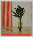 These thoughts are not typical. They greatly surprised. The elongated oval foliage attracts me more than say Rae’s rendition of the curved or box-shaped pots holding the stems, the bands of bright colour running along the bottom horizontal edge to underscore the picture-plane, the reflective tilted surfaces of the tables holding the vases, or the small angular islands of hot colour flashing through delicate planes of ‘crumbly’ over-painting.