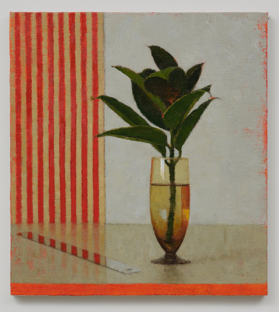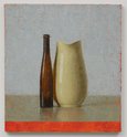 Rae’s rendered oil-on-linen images are carefully designed and fastidiously executed, with some I think much more emotional than others. They are perhaps not planned that way, as what they happen to elicit by way of visceral response is through formal compositional means. Each Morandiesque (or Chardinesque?) work is frontally aligned, with no oblique angles. ie the stretcher and canvas are parallel with the depicted wooden table.