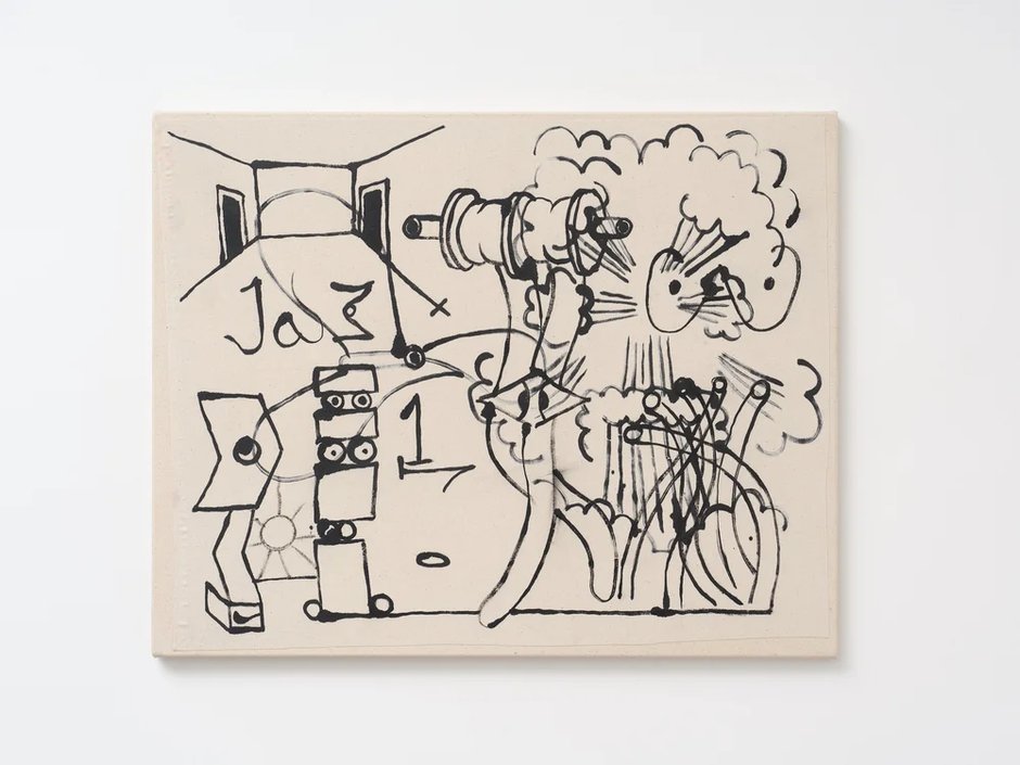 David Shrigley, Untitled (Contemporary Performance Art), 2024, ink on paper, 500 x 375 mm, framed