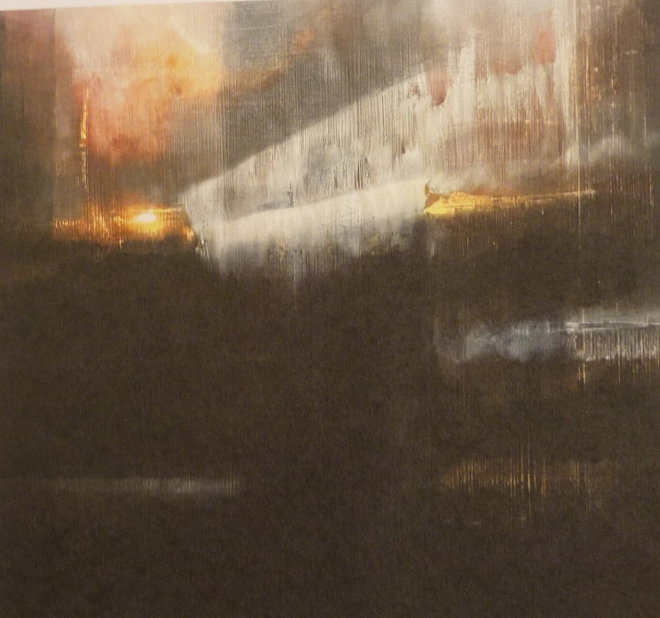First up, the beautiful and evocative treatment of a moody landscape by Hana Carpenter, (Dispersing Line) who displays a sensitive handling and control of the paint surface to create a haunting picture of land and sky with minimal chromatic means. Garry Currin does something of the same with Invocation that is part landscape, part abstract, invoking elements of Mark Rothko.