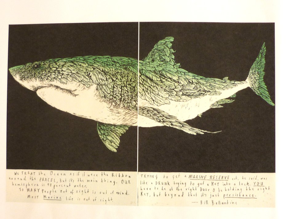 When it came to the outright winners, there were absolutely no surprises here. Colonization, conservation and feminism were winners on the day. And it did appear that in separating the wheat from her chaff, it was those who shouted the loudest that got the gong. So, the Ruth Davey Merit Award in printmaking went to Ben Reid and his work with the high-pitched and blaring title, Absolute Lunacy, which was all about protesting the inequities associated with marine protection in contrast to land conservation.