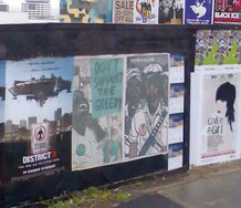 Most of the time the printed faces and figures look like they are from the sixties, having the flattened heavy contours that you get with a lot of, say, Beatles or Haight-Ashbury posters