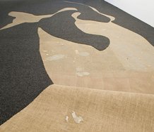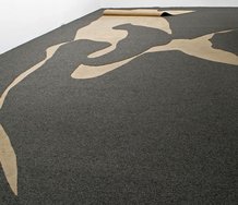 Frater’s removed shapes are often undulating lyrical arabesques or skinny weedy slashes and they provide a sort of frame for the carpet-layer’s accidental ‘artistry’ - on a concrete ‘canvas’ that peeks through.