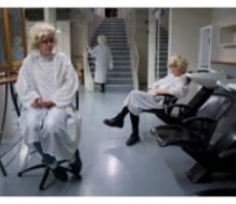 Robyn Hoonhout’s duratrans have pairs of objects (images of elderly women included) is if in a promotional campaign that might go in bus shelters. She seems to be contrasting human individuality with Fordist factory production - and deliberately mixing consumer with the consumed.