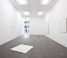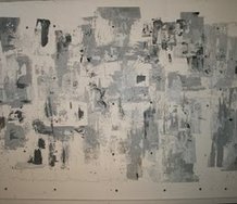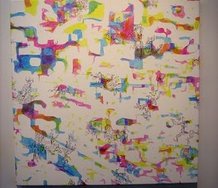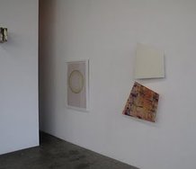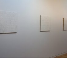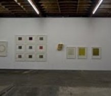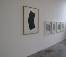 Almost all of the work here is about tactility of surface; sensual qualities of thinly layered coloured paint or ink within rectangles, parallelograms or line.