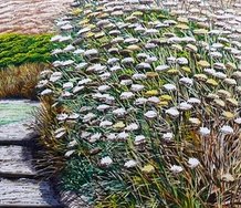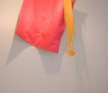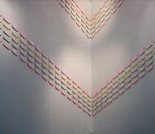 As a colourist Darragh’s chromatic combinations in her wall and floor works often are too brash, especially with her use of fluoro, or with too many hues. She succeeds therefore when the palette is dead simple.