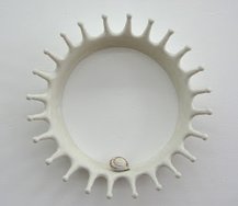 This substantial loop made of hundreds of joined up (pressed) daisies, held aloft by over fifty glass stanchions, is a sight to behold. It is not optically spectacular - though it is beautifully understated and extremely fragile - but it is a clever idea.
