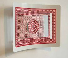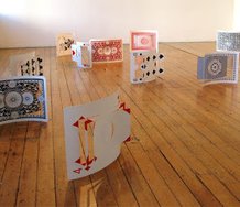 As an installation Deck: First Cut works well. A room full of these works on only the walls would look tediously regular - for as relief sculpture you don’t want to see too many in succession. However on the floor as part of a ‘pack’, a large number (i.e. over three) seem more unpredictable. Looking down on the curved planar edges helps enormously. It is also interesting looking through the holes at what the curved stainless steel reveals of its own form.
