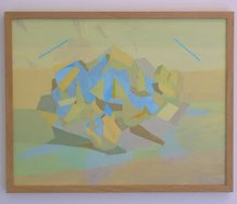 It is no surprise that his artist’s statement at Newcall, a sheet of writing describing its own production processes and created while he was taking a shower, is the best item in the show. This artist has a real instinct for language and keeping it fresh. He knows how to adapt, shape and effectively pace his written thoughts, thoroughly keep track of all his various senses, and incorporate precise detail.